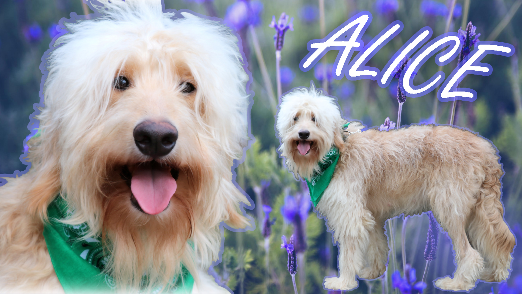 Alice is a fully health-tested F1 Goldendoodle. Her parents are Kho Zi (AKC-registered Standard Poodle) and Bentley (AKC-registered Golden Retriever). Alice has a wavy golden blonde coat. She weighs 40 pounds. Alice is extra affectionate, loyal and loves time with her humans.