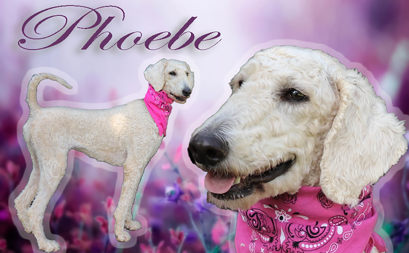 Phoebe is a fully health-tested, AKC-registered Standard Poodle with a natural, undocked tail. Her parents are Kho Zi and Romeo, both of which are fully health-tested / AKC-registered Standard Poodles. Phoebe has a non-shedding, curly, cream coat. She weighs 45 pounds. Phoebe is very agile, playful and affectionate.