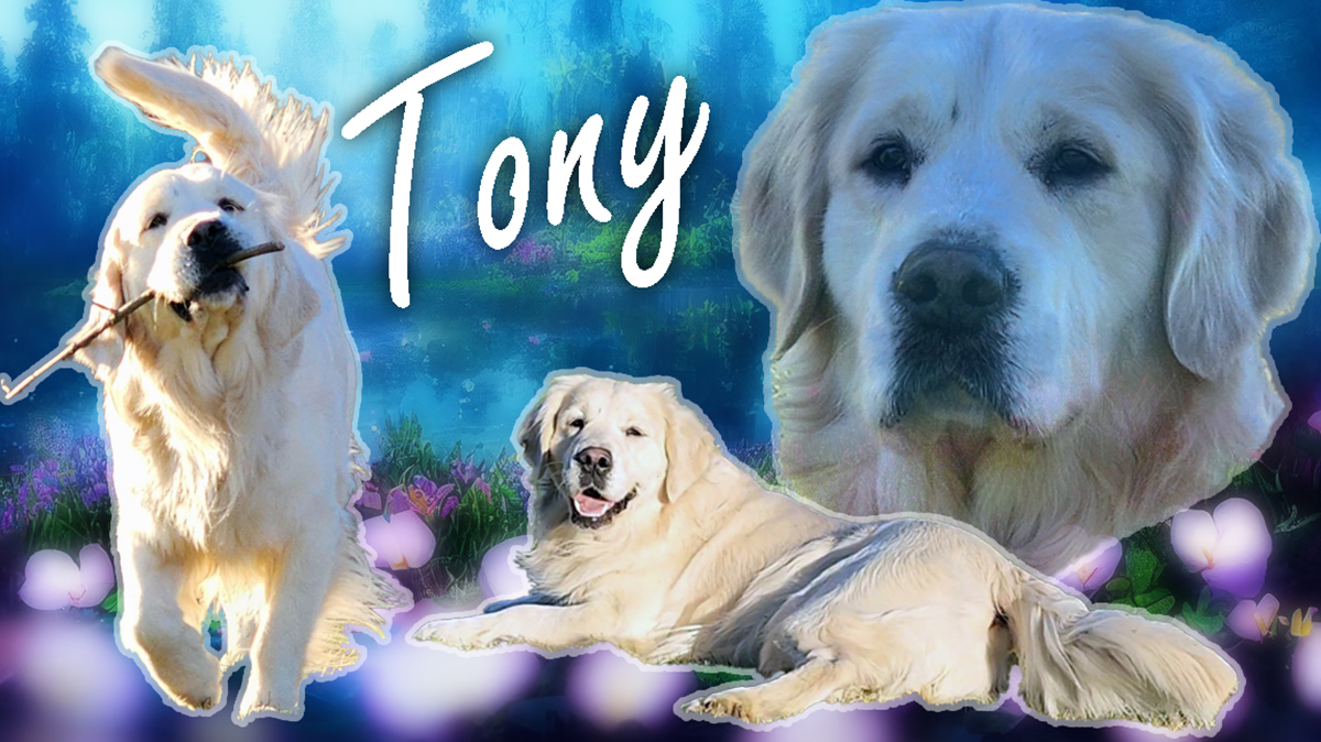 Tony is a fully health-tested, AKC-registered English Cream Golden Retriever. He was imported from Poland as a puppy. His father is a multi champion and his pedigree is full of other champions. Tony weighs 75 pounds. He has a sweet, happy personality and gets along great with other dogs and pets! Tony is the half-brother of Oskar.